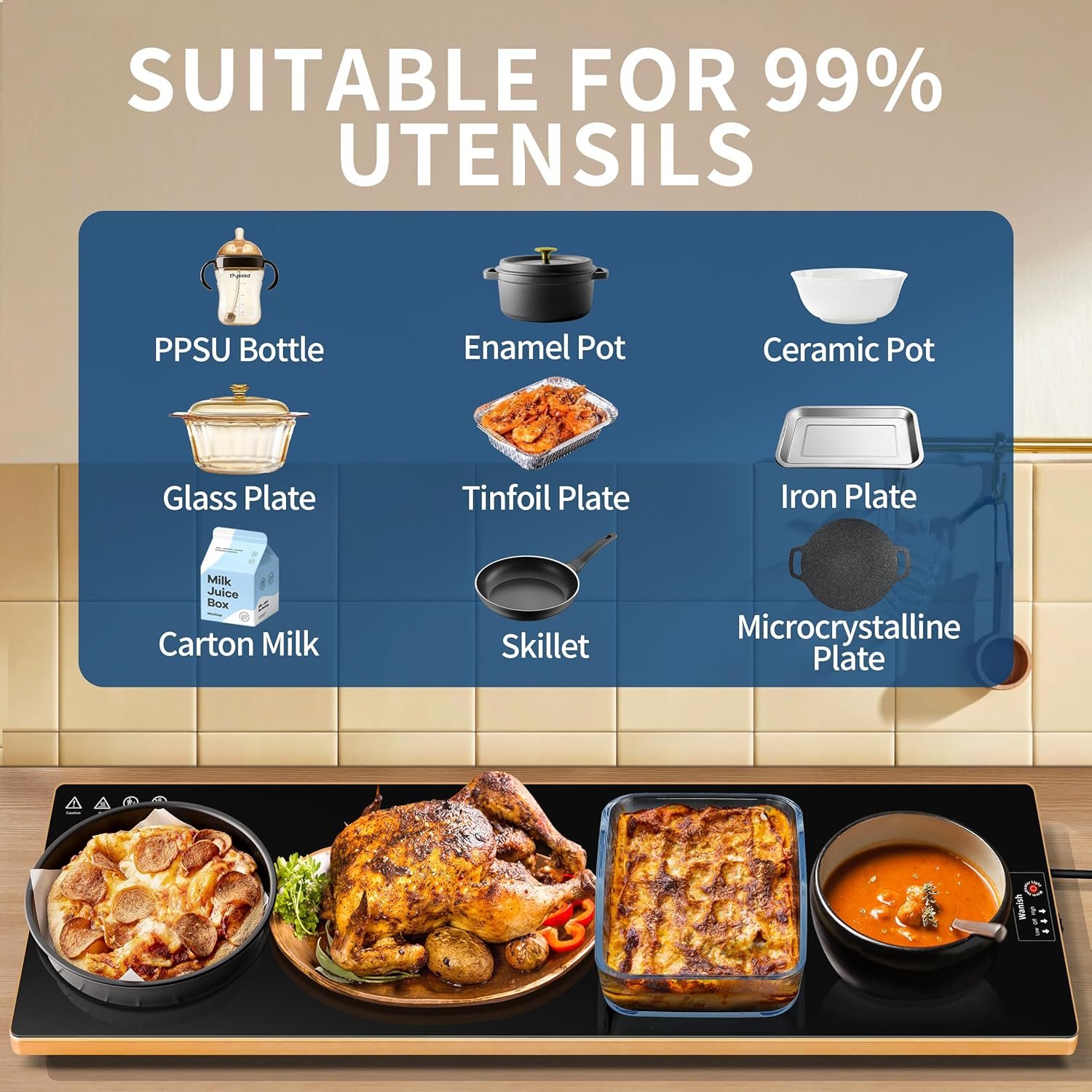 - Full-Surface Rapid Heating: Utilizing advanced PTC heating technology, this tray heats up in seconds. Unlike traditional warmers with hot spots, our full-surface heating element ensures consistent, even warmth from edge to edge.