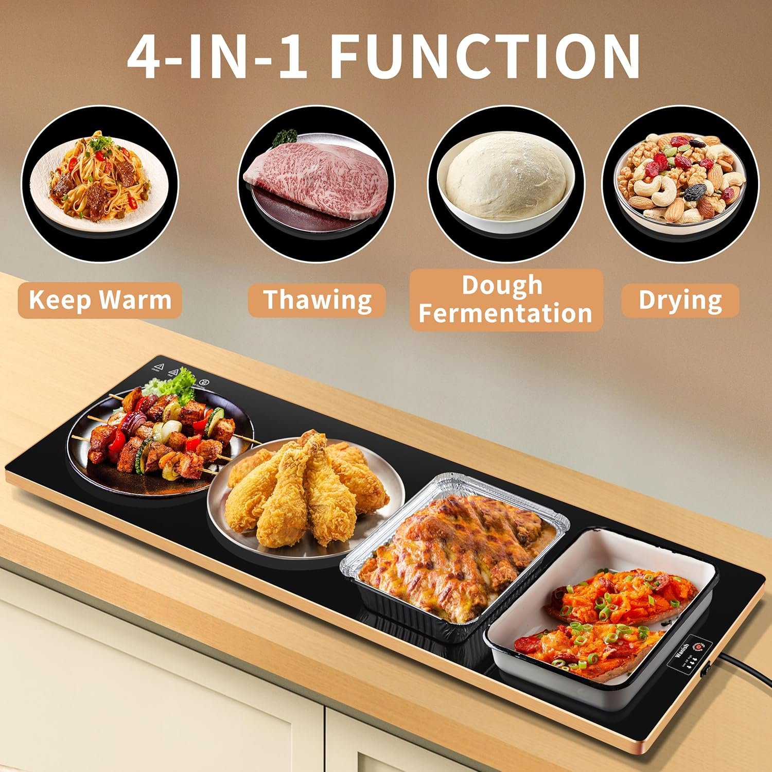 - Dual Temperature Modes with Thermostat: Take full control of your serving temperature. Featuring two precision heat settings, you can toggle between a gentle warm for pastries and a high-heat mode (up to 284°F) for keeping meats and soups steaming hot.
