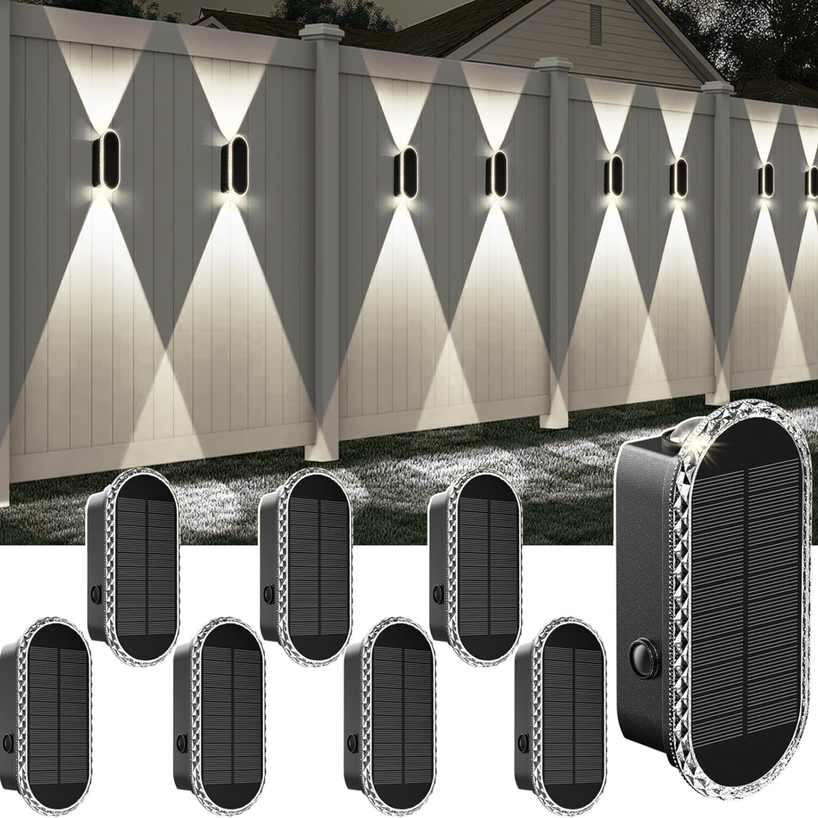 Enhance your outdoor ambiance with the LIANGLOME Solar Fence Lights (8 Pack) — featuring three color temperatures (3000K, 4000K, 6000K) and a modern up-and-down lighting design for elegant illumination. Built with IP65 waterproof protection and powered by solar energy, these lights offer effortless installation and long-lasting performance. Perfect for fences, patios, or garden walls — upgrade your outdoor space with style and sustainability today.